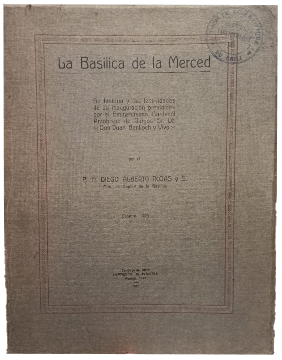 () - Santiago de Chile - Su historia y las festividades de su inauguración presididas por el Eminentismo Cardenal Arzobispo de Burgos Sr. Dr. Don Juan Benlloch y Vivo - Octubre 1923 - Contiene 137 páginas incluyendo índice - Encuadernación rústica - Contiene fotografías en blanco y negro - Leve desgaste en lomo, perímetros y puntas - Lomo levemente descolorido - Timbre de dueño anterior en tapa y portada - Mancha de humedad en contratapa trasera - Algunas pintas de óxido - Estado aceptable |