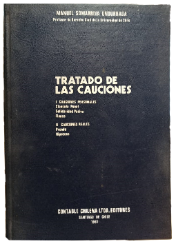 (ZZG2) - Santiago de Chile - Edición original - I: Cauciones personales: Clausula Penal, Solidaridad Pasiva y Fianza - II: Cauciones Reales: Prenda e Hipoteca - Contiene 611 páginas incluyendo índice - Encuadernado en vinilo completo color azul - Leve desgaste en lomo - Buen estado |