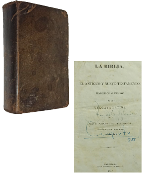 () - Barcelona - Traducidos al español de la Vulgata Latina, por el Rmo. P. Phelipe Scio de S. Miguel, de las escuelas Pias, Obispo electivo de Segovia - El Antiguo Testamento contiene 786 páginas más índice - El Nuevo Testamento contiene 253 páginas más índice - Encuadernado en cuero completo - Guardas marmoladas - Cantos amarillos - Roces en lomo, tapas, perímetros y puntas - Páginas con pintas de óxido - Firma de dueño anterior en portada - Mancha en contratapa trasera - Estado aceptable |