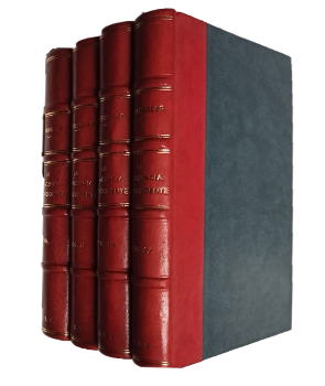 (ZZI7) - Madrid - 4 volúmenes - Traducido del Alemán por Manuel G. Morente - Segunda edición - Colección Biblioteca de Ideas del Siglo XX, dirigida por D. José Ortega y Gasset - Volumen I y II contienen la Primera parte: Forma y Realidad - Volumen III y IV (y último) contienen la Segunda parte: Perspectivas de una Morfología de la Historia Universal - Volumen I, II, III y IV contienen 329, 322, 374 y 357 páginas respectivamente - Todos los ejemplares muy bien encuadernados en medio cuero color rojo, conservan tapas originales - Guardas marmoladas - Volumen I contiene lámina desplegable - Leve suciedad en tapas originales - Volumen II con leves manchas de humedad en primeras páginas - Restos de timbre de dueño anterior en hojas de respeto - Buen estado |