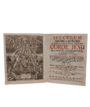 () - Biberbach - Et nune ex occafione Celeberrimae Congregationis fub Titulo SS. Cordis - Opus, Omnibus SS. Cor Jesu amantibus, praedicantibus, aut meditantibus apprime utile ac proficuum - El espejo de amor y dolor en el Sacratísimo y Sagrado Corazón de Jesús Encarnado, Eucarístico y Crucificado: Propósito del mundo Cristiano - Contiene 408 páginas más índice - Encuadernado en pasta española, con detalles dorados en lomo - Cantos pintados - Contiene Grabados - Desgaste en lomo, tapas, perímetros y puntas - Lomo con leve merma de material en parte superior - Algunas manchas en tapas - Manchas de humedad al interior y algunas pintas de óxido - Algunos timbres del dueño anterior al interior - Mancha de hongo en guarda trasera - Regular estado |