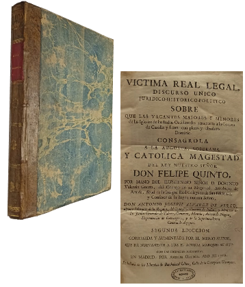 (OE11) - Madrid - Consagrola a la Augusta Soberana y Catolica Magetad del Rey Nuestro Señor don Felipe Quinto - Segunda edición corregida y aumentada por el mismo autor, que da nuevamente a la luz el actual Marqués su Hijo - Contiene 19[h]+374[p]+ indice - Encuadernado en medio cuero - Bordes de las tapas levemente desgastadas - Estado más que regular |