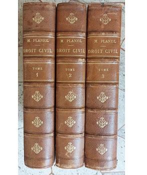 (TE21) - París - 3 Tomos - Septieme Edition - Contiene: Tomo I: Principes généraux. Les personnes. La famille. Les incapables. Les biens - Tomo II: Les preuves. Théorie générale des obligations. Les contrats. Les priviléges et les hypothéques - Tomo III: Régimes matrimoniaux. Successions. Donations et testaments - Todos los ejemplares encuadernados en hermoso medio cuero café - Firma del dueño anterior - Algunos roces en perímetros - Buen estado |