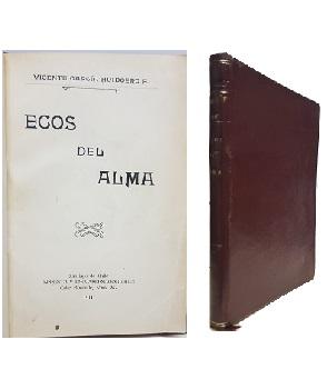 (CA23) - Santiago de Chile - Primera edición de la primera obra de Vicente Fernández García-Huidobro, nótese el nombre con el que escribe la obra "Vicente García-Huidobro Fernández" - Encuadernado en cuero completo con letras doradas en el Lomo - No conserva tapas originales - Contiene XI más 140 páginas con 8 ilustraciones - Puntas débilmente gastadas - Firma dueño anterior - Buen estado |