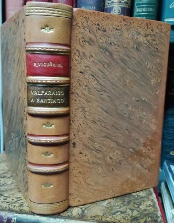 (OO32) - Santiago Valparaíso - Datos impresiones noticias y episodios de viaje - Un volumen - Segunda edición - 562 páginas - Bellamente encuadernado en cuero completo café con parches en el lomo - Guardas marmoladas - Portadilla con manchas de óxido - Portada con pocas manchas - Pintas de óxido a lo largo de algunas páginas del libro - Un par de páginas reparadas en sus bordes - Buen estado |