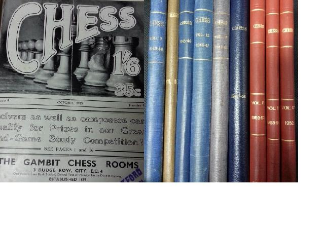 (AJNN) - Sutton Colfield - Founder and Editor Baruch H. Wood, Assistant editor Prof. H. Simpson - Sutton Colfield - 9 volímenes de la revista inglesa de ajedrez - Primer Volumen Octubre de 1943 a Septiembre 1944, vol. 9 Ní 97 contiene 200 píginas - Segundo volumen de Octubre de 1944 a Septiembre de 1945 vol. 10 Ní 109 contiene 210 píginas - Tercer volumen Octubre 1945 a Septiembre 1946 vol. 11 Ní 121 contiene 306 píginas - Cuanto volumen Octubre 1946 a Septiembre de 1947 vol. 12 Ní 133 contiene 366 píginas - Quinto volumen Octubre 1947 a Septiembre 1948 vol. 13 Ní 145 - Sexto volumen Octubre 1950 a Septiembre 1951 vol. 16 Ní181 contiene 288 píginas - Síptimo volumen Navidad 1951 a Enero 1952 vol. 17 Ní 196 Contiene 250 píginas - Octavo volumen Octubre 1952 a Septiembre de 1953 vol. 18 Ní 205 contiene 246 píginas - Noveno volumen Octubre de 1953 a Septiembre de 1954 vol. 19 Ní 228 contiene 184 - Los 9 volímenes encuadernados en tela completa y tienen un peso aprox. de 3,5 kilos - Muy buen estado |