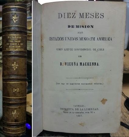 (OO43) - Santiago de Chile - Primera Edición - 2 tomos en un volumen - Con más de doscientos documentos inéditos - Con 503 y 347 páginas respectivamente - Ambos tomos encuadernados en un sólo volumen en medio cuero café, con relieves y adornos en dorado - Contratapas y portada con pintas de óxido - Buen estado |
