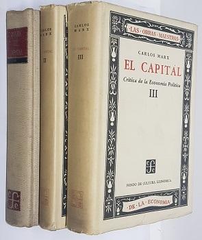(TAI4) - México - 3 volúmenes, completo - "Crítica de la Economía Política" - Traducción Wenceslao Roces - Los 3 volúmenes encuadernados en tela completa de editorial, tomos II y III mantienen sobrecubierta original - Hoja papel biblia - Buen estado |