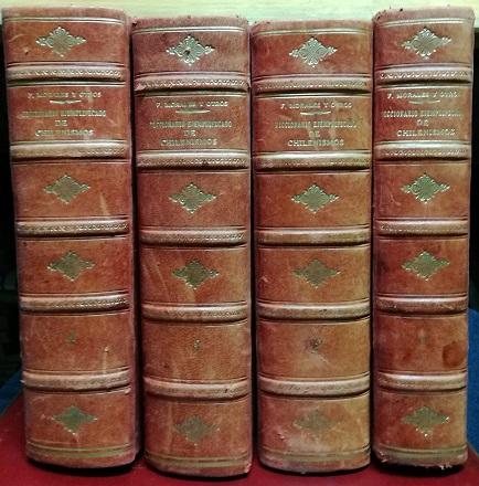 (TN41) - Valparaíso - 4 tomos : Tomo 1: A-Caz, contiene XXI + 941 páginas, año 1984- Tomo 2: CC-Grup, contiene IX + (943-2231) páginas, año 1985 - Tomo 3: Gua-Peq, contiene XII + (2233-3497) páginas, año 1986 - Tomo 4: Per-Z. Suplemento-Bibliografía, contiene XIX + (3499-4913) páginas - Oscar Quiroz Mejías (Investigador Principal) - Antonio Riffo Farías (Investigador Adjunto) - Cecilia Copello Cruz (Colaboradora Académica) - Todos los tomos encuadernados en medio cuero café rojizo con adornos dorados en el lomo - Todos conservan tapas originales - Adhesivo librería anterior en hoja de respeto - Lomos levemente desgastados y descoloridos - Buen estado |