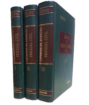 (VVL1) - Buenos Aires - 3 tomos - Tercera edición - Volumen I: "La Constitución y El Proceso Civil", con 366 páginas - Volumen II: "Pruebas en Materia Civil", con 478 páginas - Volumen III: "El Juez, Las Partes y el Proceso", con 572 páginas - Los 3 volúmenes con encuadernación original en tela completa verde - Con desgaste usual, roces. Desgaste en tela tapa trasera tomo I, pequeña merma - Cantos muy poco sucio - Interior bien - Buen estado |