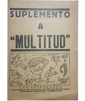 (OO64) - Santiago de Chile - Contiene: "Estampa del Tenebroso" - Con Poema inédito de 20 líneas, de puño y letra, de Pablo de Rokha dedicado a Alone, haciendo una mención negativa al trabajo de Pablo Neruda - Portada por Amaya - Folleto de 4 páginas, sin año de edición - Tamaño: 28.5 cm x 17.0 cm - Pequeña Mancha en tapa - Algunos roces en bordes - Buen estado |