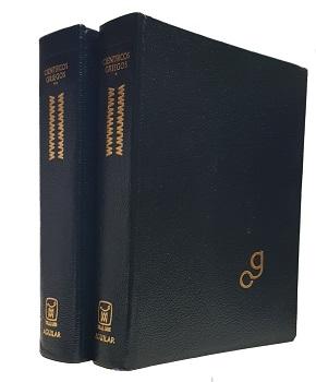 (BBB1) - Madrid - 2 tomos - Recopilación, Estudio Preliminar, Preámbulos y notas por Francisco Vera - Volumen I: Pitágoras, Hipócrates, Demócrito, Platón, Aristóteles, Teofrasto, Eudemo de Rodas, Euclídes, Aristarco - Volumen II: Arquímedes, Apolonio de Pergamo, Eratóstenes, Nicandro, Hiparco, Teodosio de Tripoli, Herón de Alejandría, Dioscorides, Ptolomeo, Galeno, Nicomaco de Gerasa, Pappo, Diofabto de Alejandría, Proclo de Licia - Con 998 y 1190 páginas respectivamente - Ambos volúmenes con encuadernación original en cuero completo verde - Hoja papel biblia - Láminas en frontispicio - Timbre de dueño anterior - Buen estado |