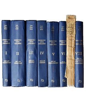 (TAY7) - Santiago de Chile - 8 Tomos - Segunda edición puesta al corriente de la legislación - Contiene: Tomo I: De las Personas - Tomo II: De las Personas - Tomo III: De los Bienes - Tomo IV: De los Bienes - Tomo V: De las Obligaciones - Tomo VI: De las Obligaciones - Tomo VII: De los Bienes (único tomo distinto a la colección, año de edición 1932) - Tomo VIII: De la Sucesión por Causa de Muerte. De la Prescripción - Hoja papel biblia - 7 de los 8 volúmenes encuadernados en vinilo completo azul de editorial, tomo VII en rústico - Tomo VII con lomo despegado, contratapa despegada, intonso y marcas de óxido en sus cantos - Buen estado