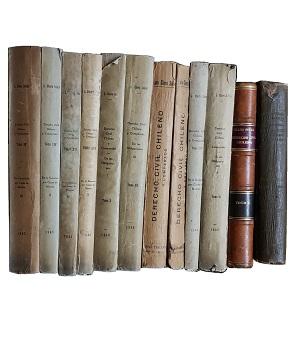(TV6) - Santiago, Chile - 13 tomos en 12 volúmenes del "Curso de Derecho Civil", distintas ediciones - Tomo I y II del año 1898 Establecimiento Poligrafico Roma, tomo III del año 1944 Imprenta el Imparcial, tomo IV del año 1946 Imprenta el Imparcial, tomo X del año 1936 editorial Nascimento, tomo XI del año 1937 editorial Nascimento, tomo XII del año 1939 editorial Nascimento, tomo XIII del año 1940, tomo XIV del año 1941 editorial Nascimento, tomo XV del año 1942 editorial Nascimento, tomo XVI del año 1943 editorial Nascimento, tomo XVII del año 1945 editorial Nascimento, tomo XVIII del año 1977 editorial Universitaria - Tomo I-II y X encuadernados en tela completa (2 tomos en un volumen) y medio cuero, respectivamente - El resto de los ejemplares con encuadernación original en rústica - Algunos tomos rústicos con desgaste y mermas en bordes de lomo - Interior bien - Volumen en tela completa con desgaste y merma en punta de lomo - Tomo I con algunas páginas subrayadas, no interfiere lectura - En general, correcto estado |