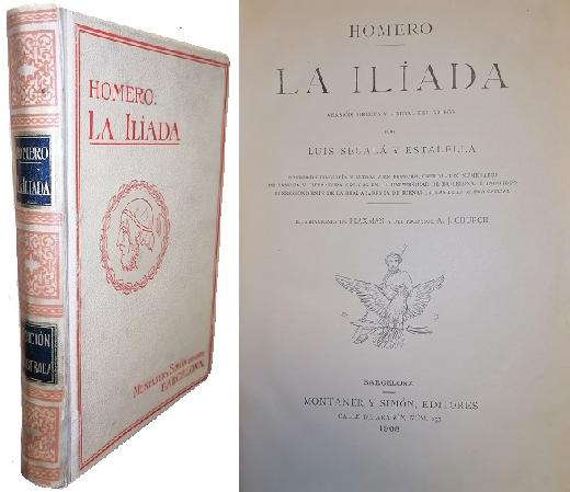 (AAE2) - Barcelona - 24 x 17 cm - Contiene 443 páginas - Versión directa y literal del griego por Luis Segalá y Estalella - Ilustraciones de Flaxman y del profesor A. J. Church - Bonita encuadernación de origen - Guardas ilustradas - Lomo y tapas con desgaste, principalmente en bordes - Tapa trasera descolorida en un sector - Buen estado |