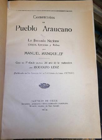 (CA61) - Santiago de Chile - 24 x 17 cm - "Con un prefacio acerca del arte de la traducción por Rodolfo Lenz" - Publicado en los Anales de la Universidad, tomo CXXXIV - Contiene 145 páginas, incluye 16 figuras en B/N, entre fotografías e ilustraciones - Encuadernado en medio cuero café, con título dorado en lomo y borde del cuero repujado - Lomo con desgaste - Portada con merma en zona superior (falta un 10% de la hoja, aprox.) - Primeras hojas subrayadas con lápiz grafito (muy poco) - Buen estado |
