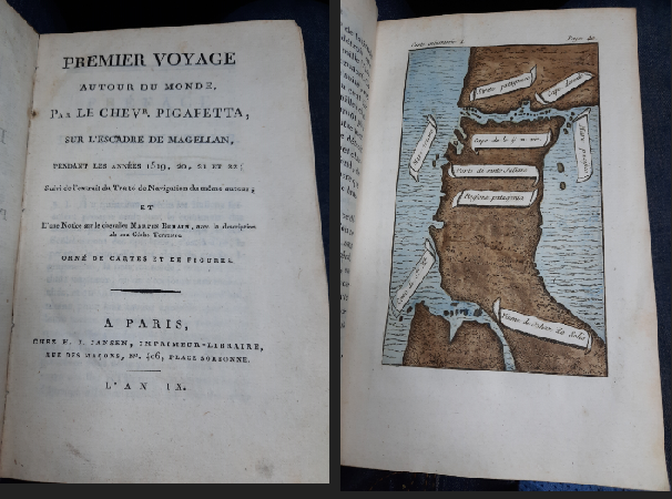(CA32) - París - Contiene además: Suivi de l'extrait du traité de Navigation du méme auteur et D'une Notice sur le chevalier Martim Behaim, avec la descriptions de son globe terrestre - Seguido por el extracto del tratado de Navegación del mismo autor y una Nota sobre el caballero Martim Behaim, con las descripciones de su globo terráqueo - No aparece año de edición en ejemplar pero fue en torno al año 1801, ya que fue editada un año después de la edición italiana del año 1800 - Contiene todos los mapas, láminas y planos descritos en el índice de láminas e incluye en la página 384 un mapa desplegable de Partie du Globe Terrestre Fait Par Martin Behaim a Nuremberg en 1492 - Ejemplar incluye unas tablas de muestras del Vocabulario Brasileño, Patagón, Mar del sur y algunas islas - Este ejemplar es la primera edición en francés luego de ser encontrado el manuscrito en la Biblioteca Ambrosiana de Milán con notas de Carlo Amoretti - Encuadernado en cartoné - Sin timbres, ni rayas ni marcas de óxido - Ejemplar completo - Buen estado |