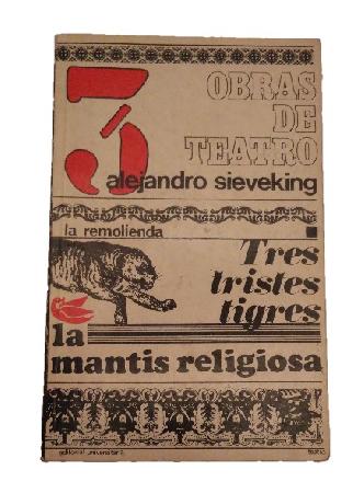 (AAD6) - Santiago de Chile - Contiene 3 obras de teatro: La Remolienda, Tres Tristes Tigres y La Mantis Religiosa - Contiene 180 páginas incluyendo índice - Encuadernación rústica - Leve desgaste en lomo y puntas - Buen estado |