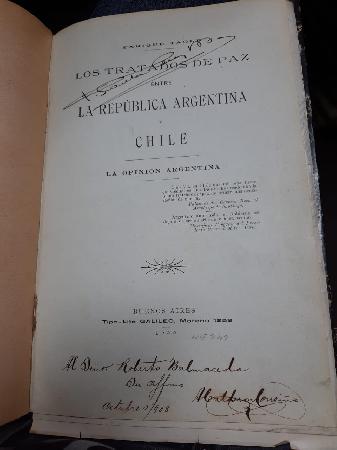 (OO71 ) - Buenos Aires - Un volumen original , guardas, port,1 h homenaje , 4 hojas (dos de ellas sueltas) con varios retratos de personas que participaron en el acuerdo . 109 páginas - Restos de papel de anterior biblioteca y firmas y dedicatoria de dueño anterior en portada - Encuadernación medio cuero negro con leve desgaste en lomo - Buen estado |