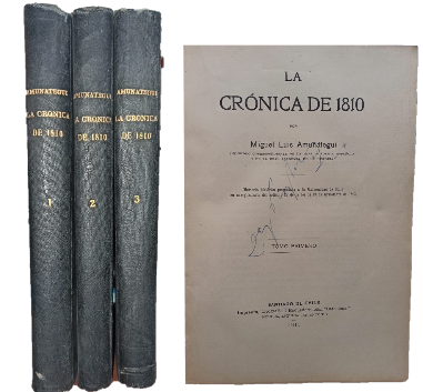(TS4) - Santiago de Chile - 3 volúmenes - Miguel Luis Amunátegui, individuo correspondiente de la Real Academia Española i de la Real Academia de la Historia - Memoria histórica presentada a la Universidad de Chile en cumplimiento del artículo 28 de la lei de 19 de noviembre de 1842 - Tomo I, II y III contienen 414, 435 y 365 páginas respectivamente e incluyendo los índices - Encuadernados en tela completa color negro - Leve desgaste en lomos, tapas y puntas - Tapas con leve suciedad - Firma de dueño anterior en portada y página siguiente de cada tomo - Buen estado |