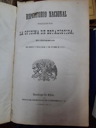 (TAQ3) - Santiago de Chile - Un volumen original de 184 páginas más la matrícula jeneral de los abogados de la República con páginas sin enumerar - Además trae el estado Jeneral de provincias sumando trece ,en excelente papel y desplegables no formando parte de las páginas - Este texto ha sido estudiado y trae notas de tinta en los márgenes y papeles insertos - Encuadernación cuero completo con poco desgaste en bordes y cinco cms. de lomo despegado - Buen estado |