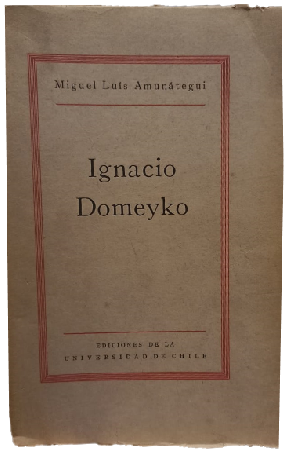 () - Santiago de Chile - Homenaje de la Universidad de Chile a Ignacio Domeyko 1802-1952 - Contiene 142 páginas - Encuadernación rústica - Leve desgaste en lomo, perímetros y puntas - Lomo con leve falta de material - Firma y timbre de agua de dueño anterior en hoja de respeto - Buen estado |