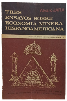 () - Santiago de Chile - Centro de Investigaciones de Historia Americana de la Facultad de Filosofía y Educación de la Universidad de Chile - Director: Eugenio Pereira Salas - Proyectó la edición Mauricio Amster - Economía Minera Hispanoamericana - Contiene 117 páginas incluyendo índice - Encuadernación rústica - Leve desgaste en lomo, perímetros y puntas - Buen estado |