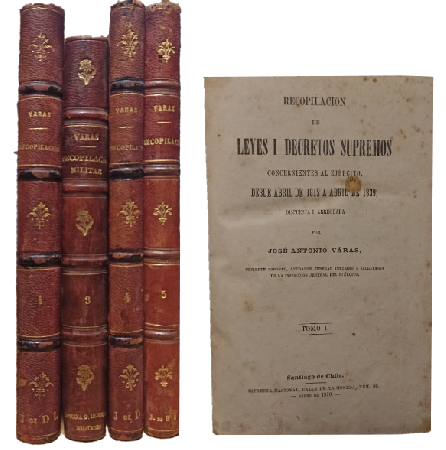 (TAE4) - Santiago de Chile - 4 volúmenes, falta n°2 - Dispuesta y arreglada por José Antonio Varas - Tomo I: Desde Abril de 1812 a Abril de 1839 - Tomo III: Desde Enero de 1859 a Diciembre de 1865 - Tomo IV: Desde Enero de 1866 a Diciembre de 1870 - Tomo V: Desde Enero de 1871 a Diciembre de 1877 - Tomo I, III, IV y V contienen XV+583, VI+392, XI+368 y VII+ 371 páginas respectivamente - Todos los ejemplares encuadernados en medio cuero de color rojo y con detalles dorados en los lomos - Desgaste natural en lomos, tapas, perímetros y puntas de todos los tomos - Pintas de óxido en algunas páginas - Interior en buen estado en general - Estado aceptable |