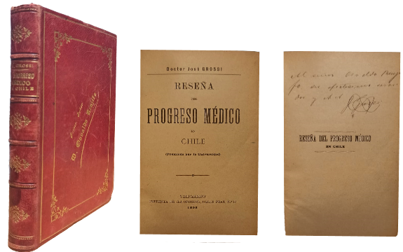 (ON61) - Valparaíso - Premiada por la Universidad - Dedicado por el autor en anteportada - Obra premiada por la Universidad - Contiene X+400 páginas incluyendo índice - Encuadernado en cuero completo color rojo con detalles finos y dorados en tapa y lomo - En tapa posterior el cuero presenta mancha de un fluido que oscurece la superficie - Cantos adornados - Leve desgaste en lomo, perímetros, tapas y puntas - Guardas manchadas de óxido - Buen estado |