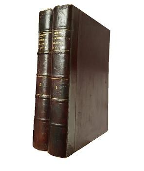 (ZZG1) - Santiago, Chile - Galería nacional o colección de biografías i retratos de hombres celebres de Chile escrita por los principales literatos del país ; dirigida y publicada por Narciso Desmadryl autor de los grabados i retratos, Hermójenes de Irisarri, revisor de la redacción - Colección completa con todos sus páginas y grabados: Tomo I con 235 páginas y 17 grabados - Tomo II con 236 páginas y 31 grabados - Ambos volúmenes encuadernados en medio cuero rojizo, tapas en tela 37x26 cm - Pintas de óxido en el interior - Tomo II con pequeña marca de humedad en primera y última hoja - Lomo con roces. Tomo I con grieta en lomo - Láminas en muy buenas condiciones - En general, correcto estado |