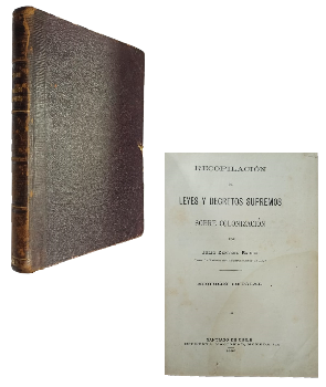 (TI51) - Santiago de Chile - Juez de letras del departamento de Laja - Edición oficial - Contiene XXVIII+367 páginas incluyendo índice - Encuadernado en medio cuero color café con detalles dorados en lomo - Cantos adornados - Desgaste en lomo, perímetros y puntas - Algunas páginas con pintas de óxido - Hoja de respeto con merma de material - Mancha de humedad en portada, comprometiendo hasta página n°13, sin comprometer interior ni contenido - Estado aceptable |
