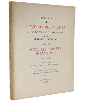 (TAQ6) - Santiago de Chile - Tomo LIII de la colección - Volumen XXX de las Actas del Cabildo de Santiago - Sociedad Chilena de Historia y Geografía y la Academia Chilena de la Historia - Prólogo de D. Hugo Rodolfo Ramírez Rivera - Comisión editora: Guillermo Donoso Vergara, Fernando Campos Harriet, Armando Moreno Martín y José Barros Franco - Contiene XLII+194+XXI páginas incluyendo prólogo e índice - Rústico - Roces en lomo y puntas - Leve suciedad en tapas - Buen estado |