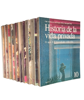 (VIT) - Madrid - 10 volúmenes - Dirigida por Philippe Ariés y Georges Duby - Traducción de Francisco Pérez Gutiérrez (Capítulo 2, traducido del inglés por Javier Arce) - Tomo I: Imperio Romano y Antigüedad Tardía, por Peter Brown, Yvon Thébert y Paul Veyne. 415 páginas - Tomo II: La Alta Edad Media, por Evelyne Patlagean y Michel Rouche. 234 páginas - Tomo III: Poder Privado y Poder Público en la Europa Feudal, por Dominique Barthélemy, Georges Duby y Charles de la Ronciére. 322 páginas - Tomo IV: El Individuo en la Europa Feudal por Dominique Barthélemy, Philippe Braunstein, Philippe Contamine, Georges Duby y Danielle Régnier-Bohler. 331 páginas. Tomo V: El Proceso de Cambio en la Sociedad del Siglo XVI a a Sociedad del Siglo XVIII, por Yves Castan, Roger Chartier, Jean-Louis Flandrin, entre otros. 419 páginas - Tomo IV: La Comunidad, el Estado y la Familia, por Maurice Aymard, Nicole Castan, Alain Collomp, entre otros. 232 páginas - Tomo VII: La Revolución Francesa y el Asentamiento de la Sociedad Burguesa, por Catherine Hall, Lynn Hunt, Anne Martin-Fugier, entre otros. 330 páginas - Tomo VIII: Sociedad Burguesa: Aspectos Concretos de la Vida Privada, por Alain Corbin, Rober-Henri Guerrand y Michelle Perrot. 334 páginas - IX: La Vida Privada en el Siglo XX, por Antoine Prost y Gérard Vincent. 405 páginas - X: El Siglo XX: Diversidades Culturales, por Sophie Body-Gendrot, Rémi Leveau, Kristina Orfali, entre otros. 242 páginas - Todos los ejemplares rústicos - Contiene ilustraciones - Buen estado |