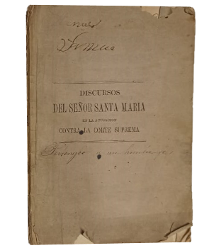 (ON22) - Santiago de Chile - De la Cámara de Diputados con motivo de la proposición de acusación interpuesta contra la Suprema Corte de Justicia - Contiene 78 páginas - Rústico - Lomo y tapas deteriorados, con merma de material - Suciedad en tapas - Puntas gastadas - Firma de dueño anterior en tapa y portada - Algunas pintas de óxido - Regular estado |