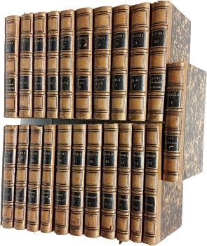 (TAW3) - París - "Avec des notes historiques" - Los 22 tomos encuadernados en medio cuero café, tapas y guardas marmoladas - Páginas con algunas pintas de óxido - Pocos roces externos en puntas y bordes - Buen estado |