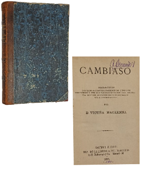 (OO23) - Santiago de Chile - Relación de los acontecimientos i de los crímenes de Magallanes en 1851 escrita sobre numerosos documentos inéditos - Contiene VIII+366 páginas incluyendo índice - Encuadernado en medio cuero color café con letras doradas en lomo - Contiene una lámina de Cambiaso - Desgaste en lomo, tapas, perímetros y puntas - Firma de dueño anterior en portada - Correcto estado |