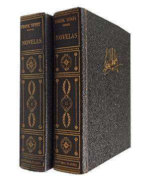 () - Barcelona - 2 tomos - Colección Clásicos Contemporáneos - Alguno de los traductores: Ernesto Batlle, J. Romero de Tejada, Mercedes Rubio, Enrique de Juan, entre otros - Tomo I contiene: Mientras la ciudad duerme, Pasiones humanas, El tesoro del valle feliz y la Hoja sarracena. 1491 páginas - Tomo II contiene: Una mujer llamada fantasía, Roble Claro, El halcón de oro, La novia da la libertad y La risa del diablo. 1657 páginas - Ejemplares encuadernados en vinilo completo de color negro, con detalles adornos dorados en tapas y lomos - Imagen en frontispicio - Tomo II conserva caja protectora - Hoja de papel biblia - Roces en lomo y puntas - Tomo II con su lomo reparado y con firma de dueño anterior en ante portada - Buen estado |