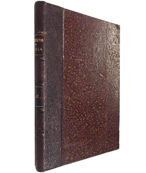 (OO22) - Lima - 2 obras - I: Renseignements sur leurs richesses bibliographiques et sur l´exposition d´anciens documents relatifs a l´mérique - Obra original de época - Tirada de 600 ejemplares. Contiene fotografías en blanco y negro. 88 páginas - II: Curiosidades Bibliográficas y Documentos Inéditos, Homenaje del Archivo Hispalense al Cuarto Centenario del Descubrimientos del Nuevo Mundo. 1892. Contiene una lámina desplegable. XVII+51 páginas - Ejemplar encuadernado en medio cuero color café, con letras doradas en el lomo - Desgaste en lomo y perímetros - Guardas marmoladas - Buen estado |