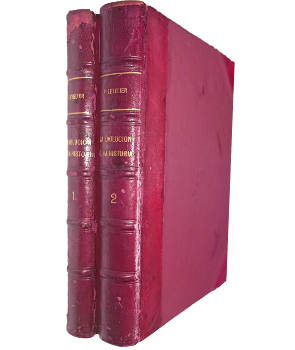 (TAR1) - Santiago de Chile - 2 tomos - Obra premiadas bajo el título por qué se rehace la historia en el certamen que el consejo de instrucción pública, abrió en 1886 - Segunda edición completamente rehecha - Editores: Alberto Poblete Garín y Victoriano Suarez - Tomo I y II contienen XIV+351 y 545 páginas respectivamente - Ambos ejemplares encuadernados en medio cuero de color rojo, con letras doradas en lomo - Tomo II con páginas intonso - Desgaste en lomo y puntas - Hojas quebradizas por envejecimiento - Tomo I con algunas páginas ligeramente marcadas con lápiz de grafito por dueño anterior y leve merma en borde superior del lomo - Correcto estado |