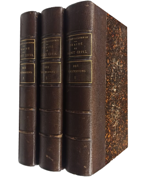 (TBC3) - Paris - 3 tomos - Des Successions - Tomo I, II y III contiene III+704, 668 y 517 páginas respectivamente - Ejemplares encuadernados en medio cuero de color café, con detalles dorados en lomos - Guardas marmoladas - Leve desgaste en lomos, tapas, perímetros y puntas - Algunas pintas de óxido y pequeñas manchas de humedad - Buen estado |