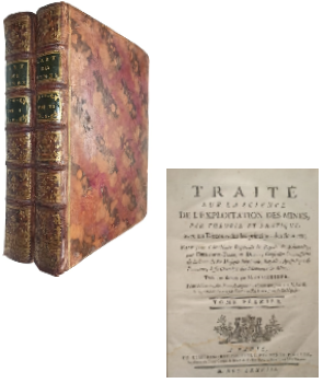 (SO) - Paris - 2 volúmenes - Traité sur la Science de L´Exploitation des Mines, par Théorie et Pratique, avec un Discours fur les principes des finances; Fait pour l´Académie Impériale & Royale de Schemnid, par Christophe-Francois Delius, Confeiller-Commissaire de la Cour de Sa Majesté Impériale, Royale, Afostolique e Romaine, á la Chambre des Monnoies e Mines - Traduit en francais par M. Schreibe - Preface par Macquer & Morand et Le Marquis de Condorcet - Tomo I y II contienen XXII+518 y 454 páginas respectivamente - Ejemplares encuadernados en cuero completo, con parches en lomo - Adornos dorados en tapas y lomo - Guardas marmoladas - Ambos ejemplares contienen láminas desplegables con grabados - Desgaste en lomos, tapas, perímetros y puntas - Algunas páginas con pintas de óxido - Pequeñas manchas de humedad, tomo primero mayormente manchado en portada y primeras páginas sin afectar contenido - Interior bien conservado en general - Correcto estado
