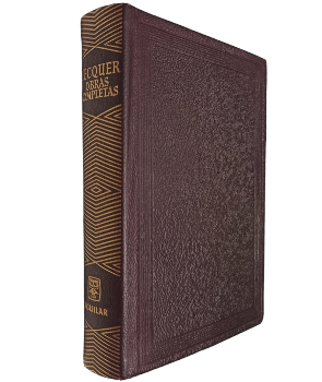(BBA4) - Madrid - Con un prólogo semblanza de Becquer por Joaquín y Serafín, Álvarez Quintero - Contiene 1268 páginas incluyendo índice - Encuadernado en cuero completo original de editorial, con detalles dorados en lomo - Retrato del autor en frontispicio - Algunos roces en lomo y puntas - Buen estado |