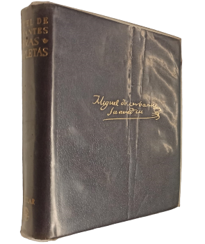 (BBC4) - Madrid - Recopilación, estudio preliminar, prólogos y notas por Ángel Valbuena Prat - Contiene 1815 páginas incluyendo índice - Encuadernado en cuero completo color café, detalles dorados en lomo y tapa - Guardas ilustradas - Cantos adornados - Retrato de autor en frontispicio - Leve desgaste en lomo - Funda plástica de dueño anterior - Leve suciedad en canto superior - Buen estado |
