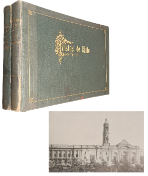 (TBB5) - Santiago de Chile - 2 tomos - Tomo l contiene 164 fotografías en blanco y negro - Tomo ll contiene 189 fotografías en blanco y negro - Encuadernados en tela completa color verde y con detalles dorados en tapas - Guardas marmoladas - Fotografías a lo largo de todo Chile, con vistas de monumentos, edificios, puertos y paisajes - En Zona norte: Salitreras, Taltal, Oficina de la Aduana Chile en Antofagasta, Cerro Alegre en Valparaíso, en la Capital, Santiago de Chile: Cerro Santa Lucía, La Catedral de Santiago, Parque Quinta Normal, Palacios, Alameda de las Delicias, Plaza de Armas, entre otros. En el Sur: Parque de Lota, Puerto Octay, Rio Cajón en Temuco y Estrecho de Magallanes entre otros lugares - Posible edición a fines del siglo IX y comienzos del siglo XX - Información sobre la edición obtenida a partir de otro ejemplar: Vistas de Chile, publicado por Litografía F. Leblanc - Lomos y puntas gastados - Tapas manchadas - Algunas páginas gastadas y otras sueltas - Algunas pintas de óxido - Deterioro en articulaciones de tapas superior con lomos - Apaisado - Dimensiones: 32x23,5cm - Aceptable estado |