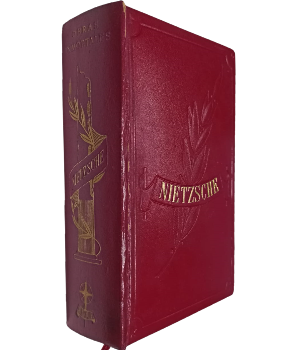 (BAA6) - Madrid - Obras inmortales - Contiene: Así hablaba Zaratustra, El Anticristo, Como se Filosofa a martillazos, Más allá del bien y del mal, Humano, demasiado humano y la Voluntad de poderío - Traducción de Aníbal Froufe y Carlos Vergara - Contiene XVI+1671 páginas incluyendo índice - Encuadernado en vinilo completo color rojo, con detalles dorados en lomo y tapa - Canto superior dorado - Guardas ilustradas - Hoja de papel tipo biblia - Ilustración del autor - Cofre protector - Poco desgaste en lomo, pequeña merma en borde superior - Buen estado