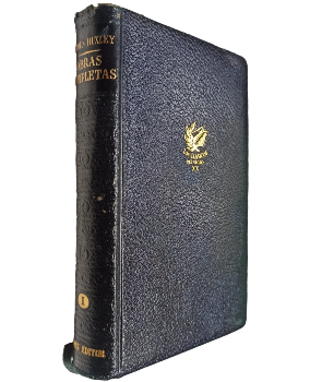 (LC5B) - Barcelona - Tomo I - Los Clásicos del Siglo XX - Traducción del inglés por J. Farran y Mayoral, Luys Santamarina y Fernando Calleja - Prólogo de J. Estelrich - Contiene: Los escándalos de Crome, Un mundo feliz, Arte, amor y todo lo demás y Ciego en caza - Contiene XVI+1237 páginas más índice - Encuadernado en vinilo completo azul, con detalles dorados en lomo y tapa - Retrato de autor en el frontispicio - Canto superior dorado - Poco desgaste - Marcas de cinta adhesiva de dueño anterior en guardas - Buen estado |