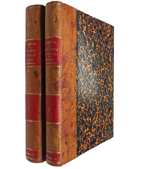 (OS43) - Santiago de Chile - 2 tomos - Estudio Histórico - Tomo II: Documentos i bibliografía - Tomo I y II contienen CCCLI y 252 páginas páginas respectivamente - Ambos ejemplares encuadernados en medio cuero color café, con parches rojos en los lomos - Guardas marmoladas - Desgaste en lomos y puntas - Pequeña mancha de humedad en cantos superiores - Buen estado |
