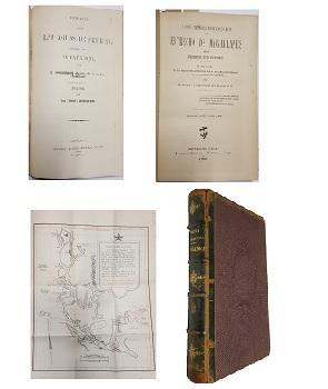 (E6) - Santiago, Chile - 1 volumen que contiene 6 obras sobre Hidrografía del sur de Chile - Primera obra: "Estudios Hidrográficos sobre Patagonia Occidental", ejecutados por el comandante i oficiales de la Real Corbeta Italiana Caracciolo en 1882, traducción de la oficina hidrográfica. Santiago de Chile, Impreso en Imprenta Nacional en 1883. Con 34 páginas, 4 mapas, 3 de ellos desplegables - Segunda obra: "Los Descubridores i Primeros Esploradores del Estrecho de Magallanes", examen de las relaciones auténticas de sus viajes, concordadas con los conocimientos modernos. Por Ramón Guerrero Vergara. Segunda parte de 1553 a 1584. Imprenta Nacional año 1880. Con 140 páginas incluye mapa desplegable - Tercera obra: "Los Descubridores i Primeros Esploradores del Estrecho de Magallanes" examen de las relaciones auténticas de sus viajes, concordadas con los conocimientos modernos. Por Ramón Guerrero Vergara. Tercera parte de 1579 a 1580. Imprenta Nacional año 1880. Con 168 páginas, incluye mapa desplegable - Cuarta obra: "Noticias sobre el Canal Trinidad i sus Adyacentes", traducido del inglés para la oficina hidrográfica. Imprenta Nacional año 1881. Con 36 páginas - Quinta obra: "Estudios sobre las Aguas de Skyring i la Parte Austral de la Patagonia", por el comandantes i oficiales de la corbeta Magallanes. Memoria de don Enrique Ibar Sierra, Imprenta Nacional 1879. Con 60 páginas incluye mapa desplegable - Sexta obra: "Derrotero de las Islas Malvinas", por B. J. Sullivan, capitán de la marina inglesa, traducido del inglés por M. de Coriolis, teniente de la marina francesa. Imprenta Nacional 1882. Con 98 páginas - Las 6 obras encuadernadas en un solo volumen en medio cuero - Lomo con desgaste - Interior en buen estado |