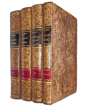 (TQ2) - Santiago de Chile - 3 tomos + apéndice - Por Don Joaquín Francisco Pacheco, de la Real Academia Española, Fiscal que fue del Tribunal Supremo de Justicia - Sexta edición corregida y aumentada - Tomo I, II, III y apéndice contienen 536, 531, 494 y 400 páginas respectivamente - Ejemplares encuadernados en pasta española, con parches azul y rojo en lomos - Detalles dorados en lomos - Guardas marmoladas - Desgaste en lomos y puntas - Buen estado |