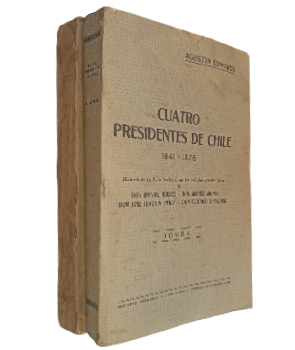 (TS3) - Valparaíso, Chile - 2 tomos - Historia de la Vida Nacional en los períodos presidenciales de Don Manuel Bulnes, Don Manuel Montt, Don José Joaquín Pérez, Don Federico Errázuriz - Prólogo de C. Silva Vildósola. - Tomo I: Los diez años del General Bulnes, Montt y el principio de autoridad (1851-1861) y Los diez años de D. José Joaquín Pérez. Contiene 23/24 láminas. XVII+376 páginas - Tomo II: Reformas constitucionales. Contiene 15/15 láminas. 392 páginas - Rústico - Desgaste en lomos, tapas, perímetros y puntas - Tapas envejecidas, con algunas manchas y pintas de óxido - Algunas reparaciones en contratapas - Algunas páginas con pequeñas mermas en bordes, gastadas - Interior en general bien conservados - Estado aceptable |